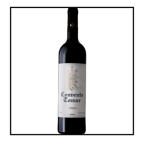 Garrafa de vinho tinto Convento Tomar Reserva com rótulo branco e detalhes dourados